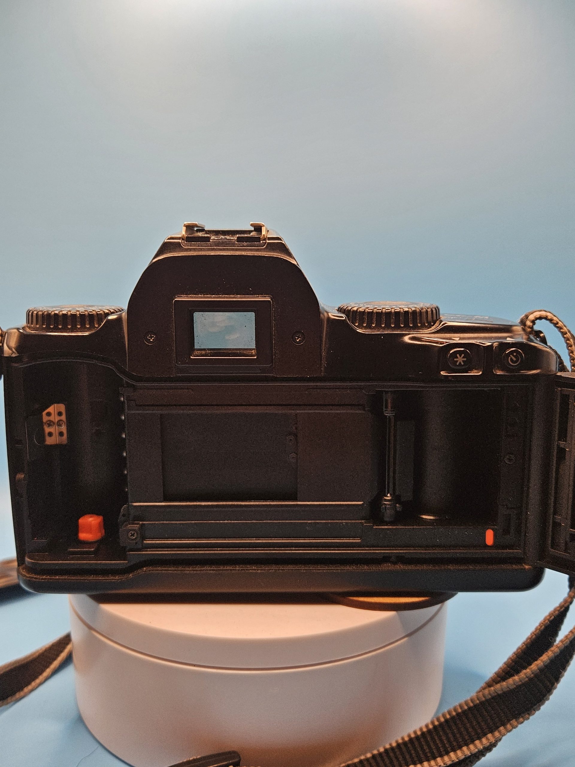 Condición: Detalles en lente. Cámara manual con montura electrónica. El lente tiene rastros de hongo que NO afectan las fotos, probado con un Kodak Gold 100 vencido en 2007 (colores experimentales que se pueden ver en las fotos de ejemplo).