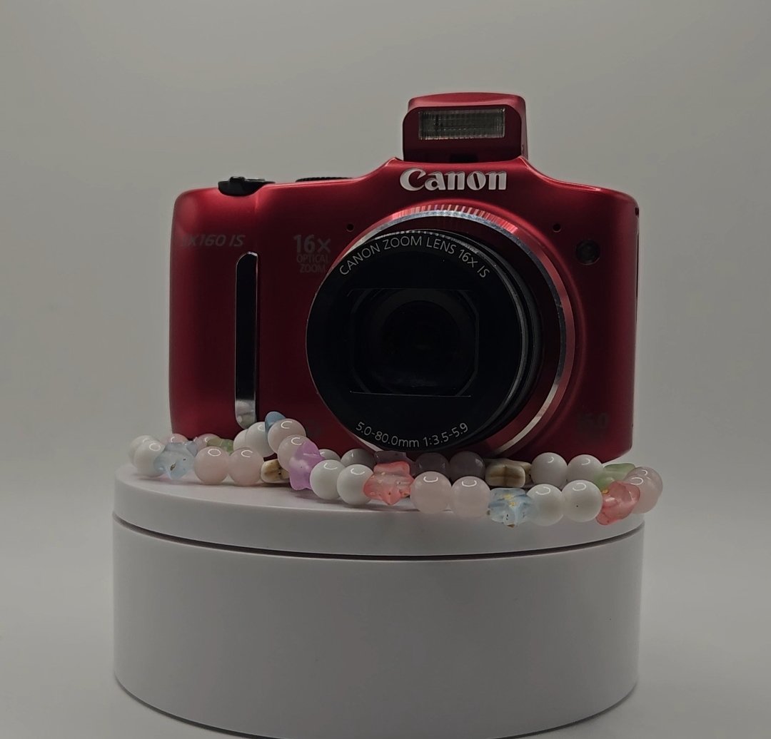 Canon PowerShot SX160 IS de 16 Megapíxeles y 16x de zoom óptico. Se encuentra en excelentes condiciones con detalles estéticos mínimos. Esta cámara destaca por su zoom súper potente en un espectacular cuerpo rojo y funciona con baterías AA.