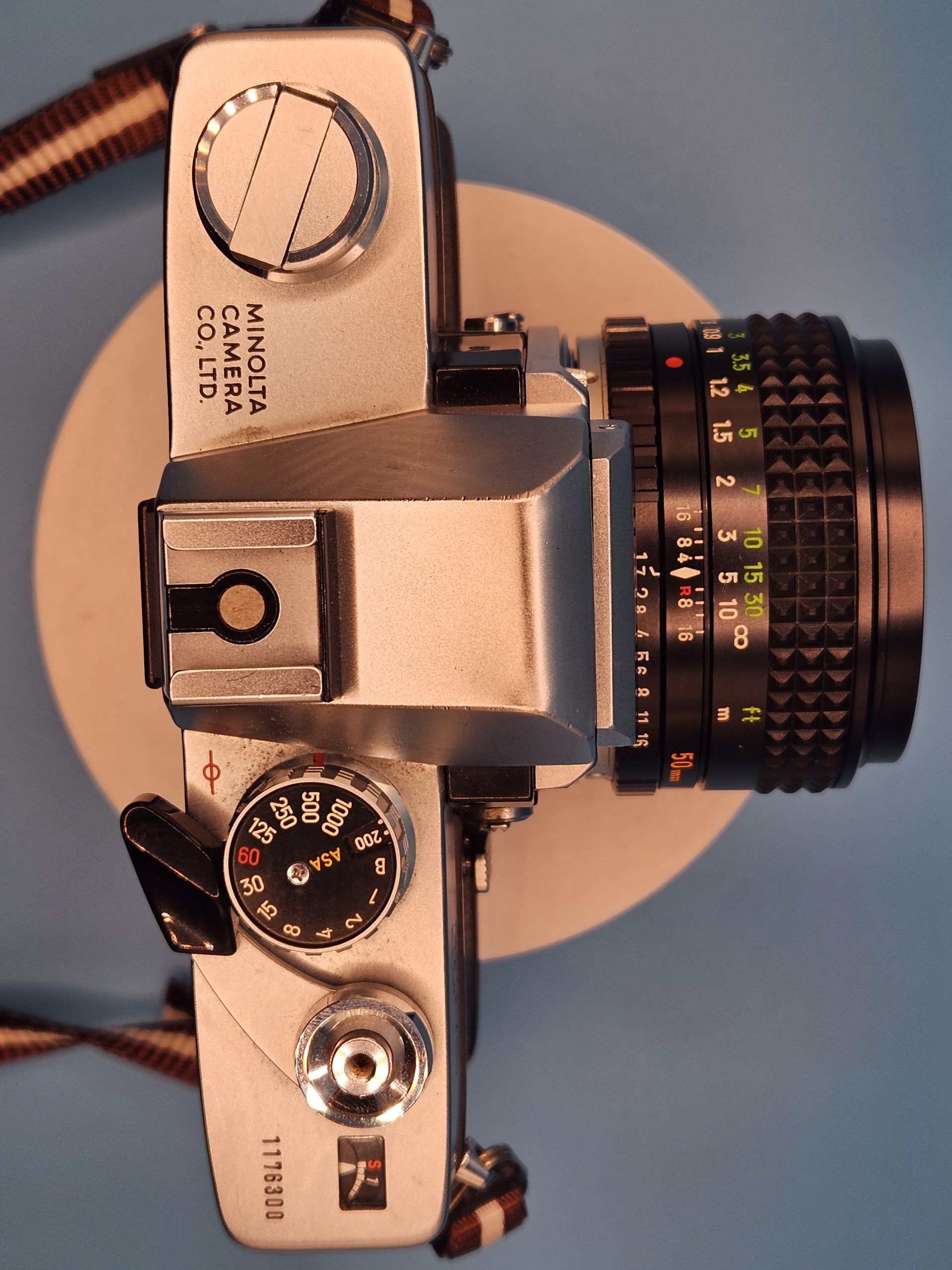 Una joya mecánica robusta y confiable. Esta unidad se encuentra en excelentes condiciones estéticas y funcionales. Viene equipada con el legendario lente Rokkor 50mm f/1.7. El exposímetro y el avance funcionan perfectamente. Presenta algo de polvo en el visor que no afecta el resultado final.